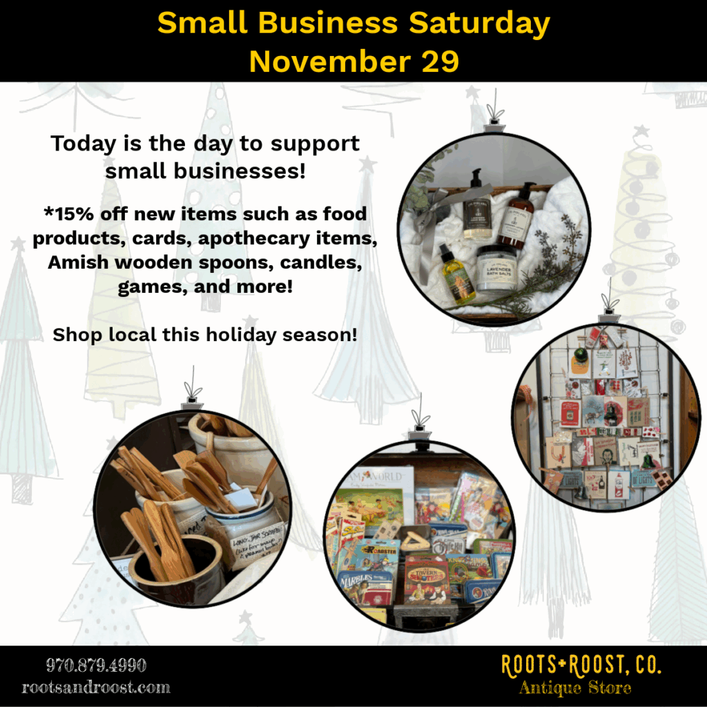🛍️ Ditch the big box stores and join us at Roots + Roost, Co. this Saturday, November 29th, for Small Business Saturday!